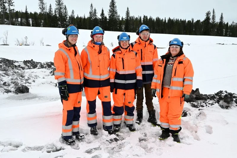 Her er gjengen som har jobbet sammen i prosjektet Myr i Rana. Fra venstre: Marie Sagvik og Rannveig Nordhagen i Avinor/Sweco, Salina Spiering, Svein Eilertsen og Maiken Bjørkan i Nordlandsforskning/NIBIO. Foto: Hedda Hiller